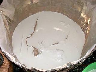 Ngâm gạo: gạo trước khi ngâm được vo để làm sạch các chất bẩn bám bên ngoài hạt cũng như làm sạch các tạp chất. Trong quá trình ngâm, nước sẽ ngấm vào bên trong hạt gạo, làm yếu liên kết giữa các hạt tinh bột do đó hạt gạo trương lên và mềm hơn giúp quá trình xay dễ dàng. Thời gian ngâm phải đảm bảo sao cho các hạt gạo hút đủ nước, thông thường là qua một đêm với lượng nước ngâm gấp 2 lần thể tích gạo. Nếu thời gian ngâm ngắn hay lượng nước ngâm ít thì hạt gạo chưa hút đủ nước, nhưng nếu thời gian ngâm quá dài sẽ tạo điều kiện cho vi khuẩn lên men lactic làm chua nước ngâm do đó ảnh hưởng không tốt đến chất lượng bánh sau này. Có thể bổ sung một ít muối vào nước ngâm để hạn chế vi khuẩn lên men chua, đồng thời muối ở nồng độ thấp còn có tác dụng làm tăng khả năng hòa tan của tinh bột. Xay: Quá trình xay nhằm sử dụng lực cơ học để phá vỡ cấu trúc hạt gạo, giải phóng các hạt tinh bột giúp cho quá trình hồ hóa dễ dàng và ít tốn năng lượng hơn. Có thể sử dụng máy nghiền trong quy mô công nghiệp hoặc sử dụng cối đá theo phương pháp thủ công để xay gạo với một muỗng gạo cho vào cối xay, ta bổ sung một muỗng nước (tức tỷ lệ gạo : nước là 1:1) để giúp cho quá trình xay dễ thực hiện, giảm bớt nhiệt độ và ma sát của cối, đồng thời giúp các hạt tinh bột được giải phóng ra dễ dàng hòa tan vào nước. Công đoạn xay đạt hiệu quả khi bột tạo ra nhuyễn, mịn và không làm biến màu bột. Tách nước: trong quá trình xay ta bổ sung một lượng lớn nước nên khối bột sau khi xay có dạng dung dịch loãng, do đó cần được tách bớt nước để làm tăng nồng độ các hạt tinh bột sao cho đủ tạo gel bằng cách cho vào túi vải, buột chặt miệng túi và ép bằng một vật nặng hoặc lắng bột và gạn bỏ phần nước trong. Tuy nhiên thời gian tách nước không nên quá lâu vì sẽ làm chua khối bột.